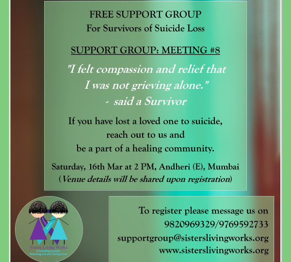 If you have lost a loved one to suicide and you are looking for support, please message us on 9769592733/9820969329 to register for the support group.