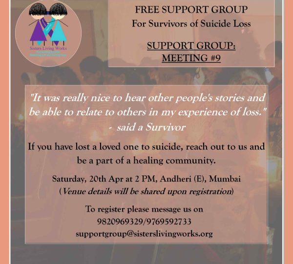 If you have lost a loved one to suicide and you are looking for support, please message us on 9769592733/9820969329 to register for the support group.