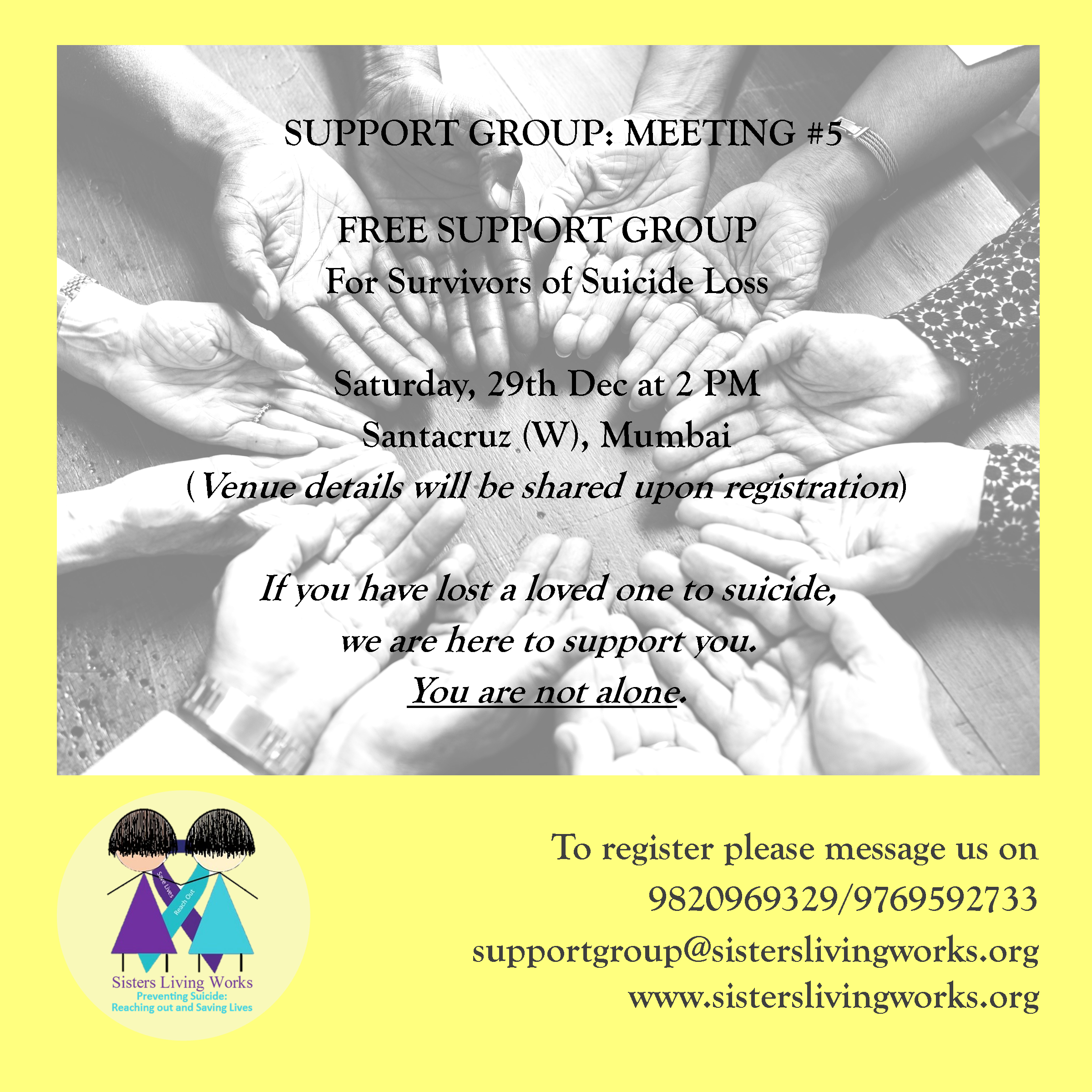The holiday season is upon us and we understand how difficult these times may be for surviving families and friends as they remember the ones they have lost. Our 5th support group meeting is happening this month and the details are in the flyer. Join us to share your stories of loss and healing in […]